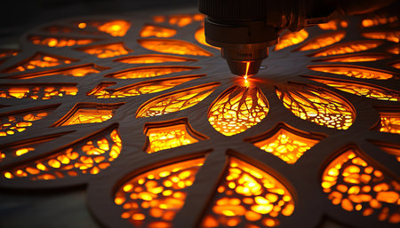 The Art of Laser Cutting: A Macro Shot of a Laser Cutter Creating Intricate Designs
