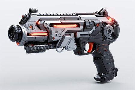 the back to the future nerf gun figure is displayed in a cinematic mood in this picture. the nerf gun style image is isolated, making it eye-catching for kids. ai generated