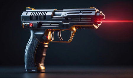 An advanced laser weapon emitting a bright beam, showcasing concept design for next-generation technology.