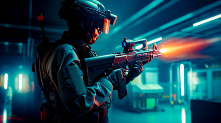 The soldier's precision with his laser gun was unmatched Creating using generative AI tools