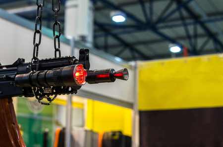 The underbarlight. Tactical flashlight and automatic. Firearms and a flashlight. Military ammunition and weapons.