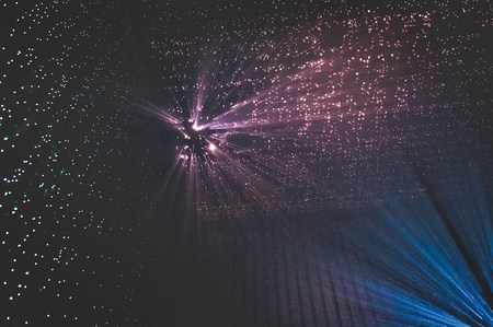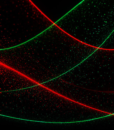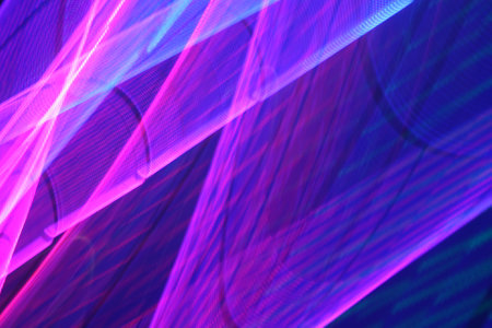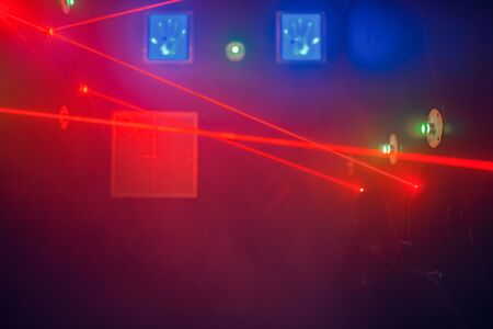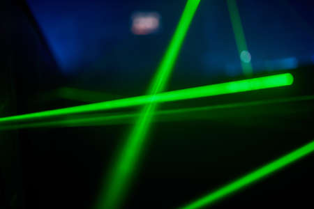 colorful laser show in the dark, closeup photo with shallow depth of field
