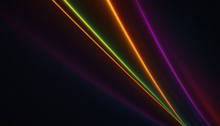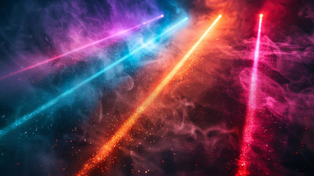 Colorful beams laser on dark background with copyspace. Abstract background concept.