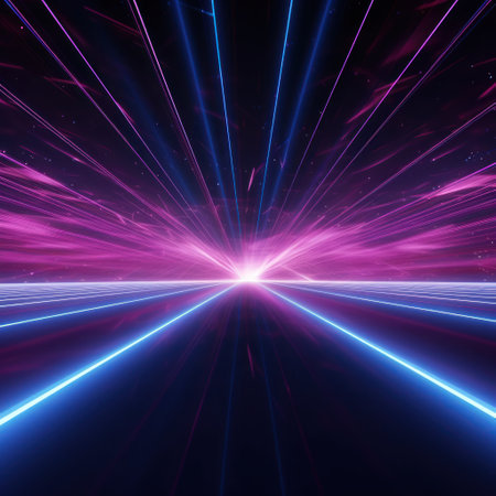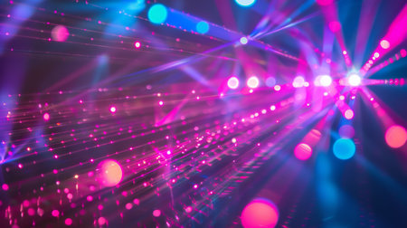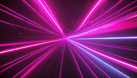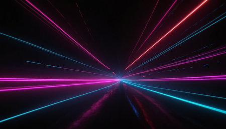 3d render of a laser show in a dark room with neon lights
