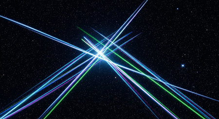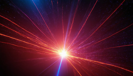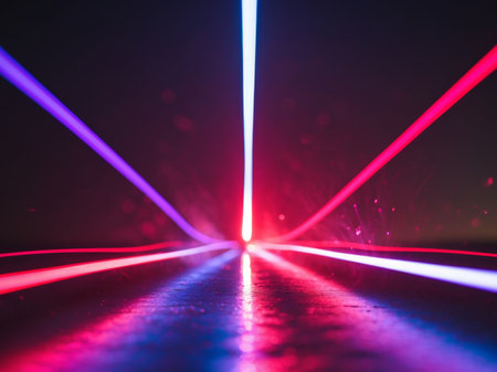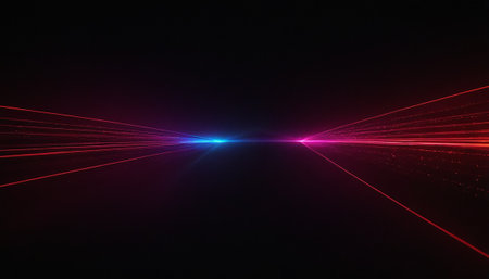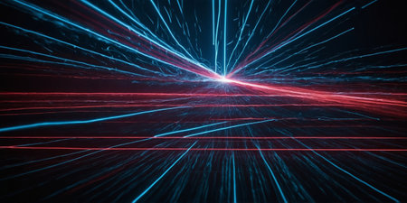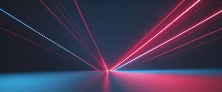 AI Generated. Dynamic Laser Beams in Red and Blue Colors with Dark Background