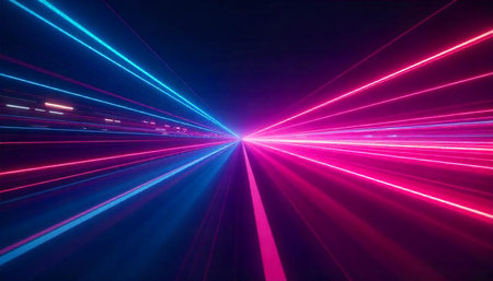 This vibrant neon fiber optic lines abstract texture background features dynamic speed lines and modern high-tech patterns, ideal for futuristic design projects, technology themes, or digital