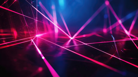Colorful laser light glow in the dark room. Ai generated.