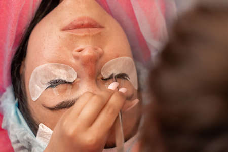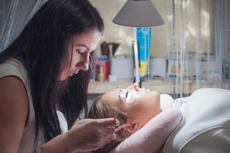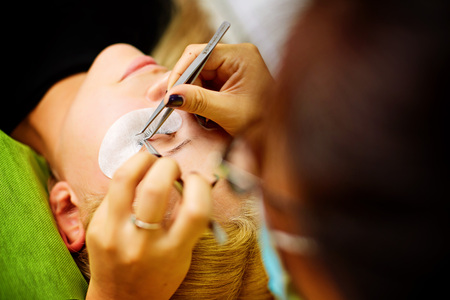 Specialist eyelashes in the beauty salon increases eyelashes client