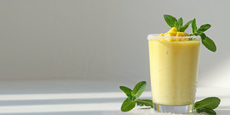 AI Generated. Refreshing Mango Smoothie Tropical Summer Drink Delicious Mint Garnish Cubes Ice Food Cold Fruit