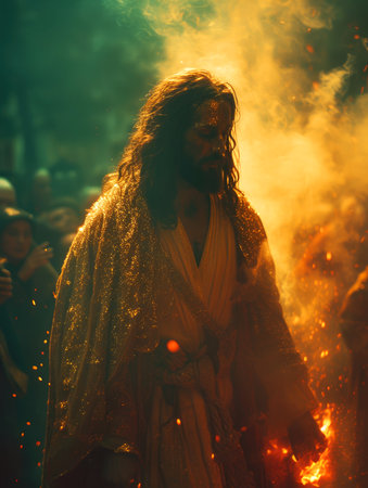Jesus Christ on the background of yellow smoke