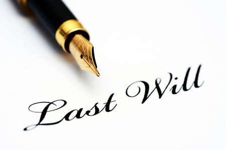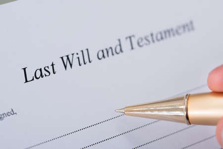 Signing a last will and testament document. Planning for the future and estate distribution.