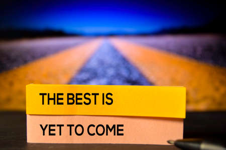 The Best Is Yet To Come on the sticky notes with bokeh background