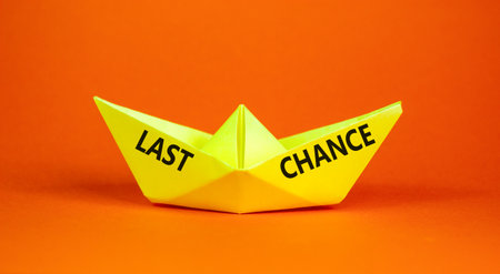 Last chance symbol. Concept word Last chance on beautiful yellow paper boat. Beautiful orange paper background. Business last chance concept. Copy space.