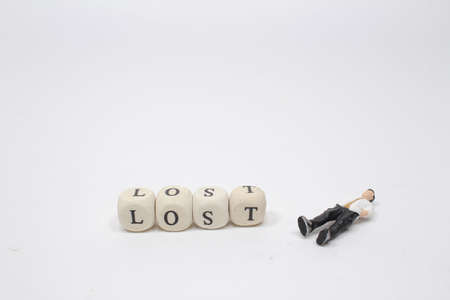 The word lost on wooden cube block with figure