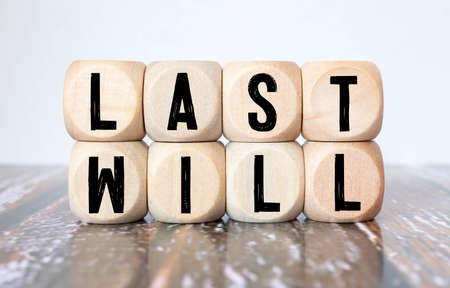 Black cubes with words Last Will on dark background