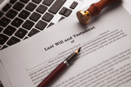 Last Will and Testament concept image complete with spectacles and pen.