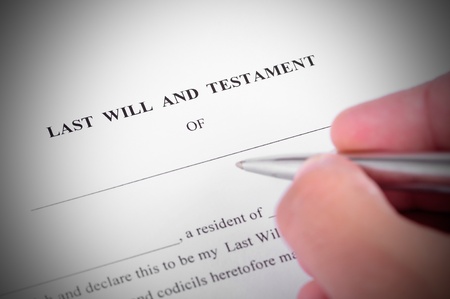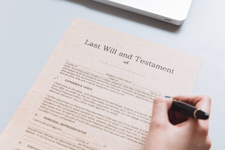 Signing a last will and testament document. Planning for the future and estate distribution.