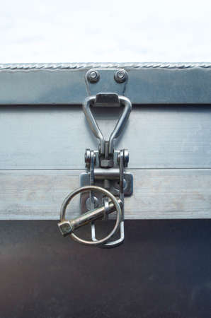 Close up on industrial metal made handle lock for opening semi trailer