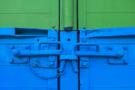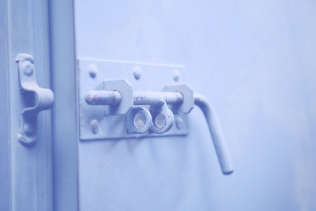 close up of slide locked blue door