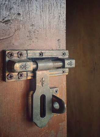 Old door lock and wooden door.metal lock