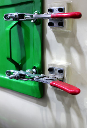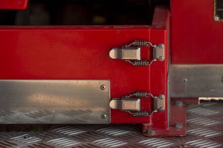 Close-up view of door closing mechanism of industrial machinery