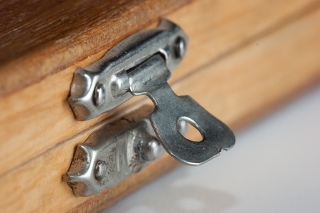 Wooden background with little iron hasp