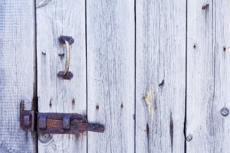 detail of an old wooden door with metal closing