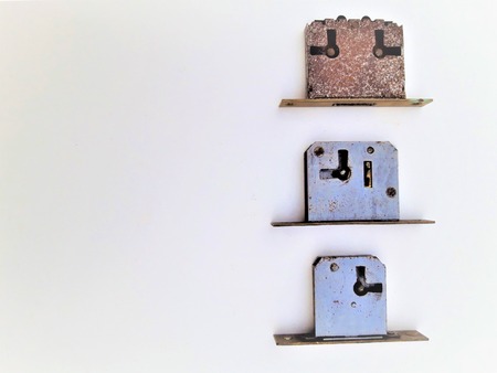 Three rusty locks on white background