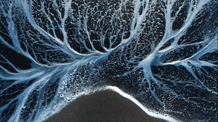 Ripples of icy water showcase abstract textures and frozen patterns in a winter landscape
