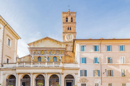 View of the church of Santa Maria, home of The mouth of truth, carved from Pavonazzo marble in Rome, Italy