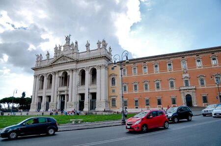 San Giovanni al Laterano Basilica front fachade with trafic at Rome - Italy