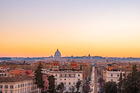 View of sunset city Rome from Castel Sant Angelo, Saint Peters Square in Vatican.