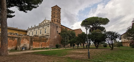 A view of the Basilica dei Santi Bonifacio e Alessio, a church in Rome, Italy.