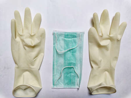Hand gloves and face Mask for corona safety hygiene protection from virus on white background,
