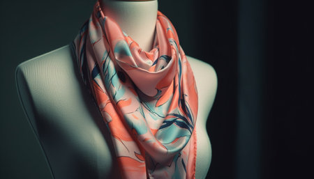 Elegant crimson silk scarf exudes luxury and sophistication, perfect for adding a vibrant touch to your style. Generated A.I.