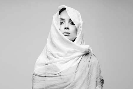beautiful young woman. beauty black and white portrait of girl in hijab