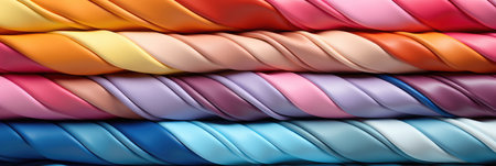 Colorful clothing scraps in a waste sorting facility showing the impact of fashion waste. Concept Fashion Waste, Clothing Scraps, Waste Sorting Facility, Impact of Fashion Waste, Colorful Clothing