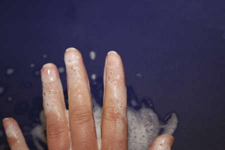 The baby's soap hands on a light background.Clean hand concept idea. Health care Coronavirus protection.