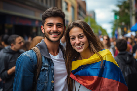 Colombian people with their flag. pride and passion through their flags vibrant colors. national identity Celebrate Colombian peoples diversity, including youngsters, adults, and elders