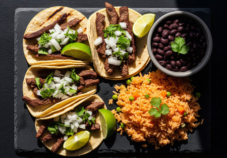 These flavorful tacos feature grilled meat, cilantro, onions, and a squeeze of lime, perfect for a tasty meal