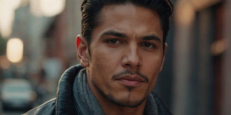 AI Generated. Handsome Latin American Model s Face for Cosmetic Advertising Banner