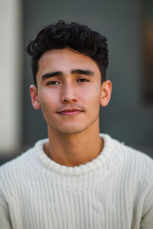 A handsome young Hispanic man with a warm, genuine smile looks directly into the camera.