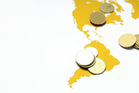 Brazil and Peru in close up on the map. Focus on the name of country. Vignetting effect.