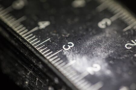 Macro view of old and worn measuring instrument units in inches centimeter milimeter