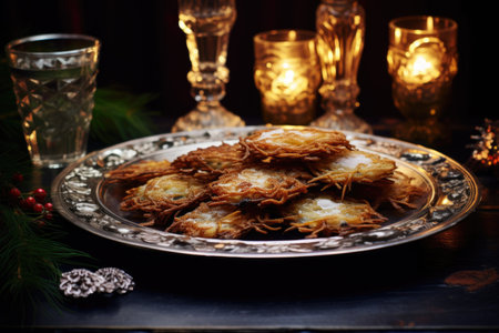 traditional hanukkah latkes on a platter, created with generative ai