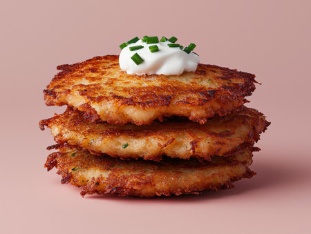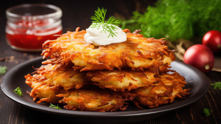 AI Generated. Potato Latkes Crispy golden hash browns on black background
