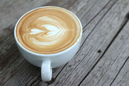 cappuccino or Latte art coffee made from milk on the wood table in coffee shop