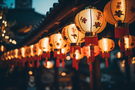 Colorful Paper Lanterns Illuminating Festive Night.