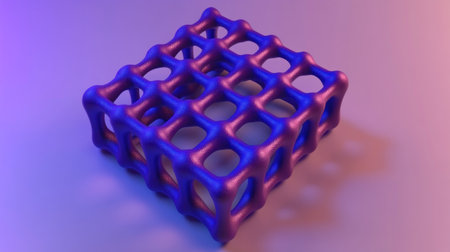3D render of dark blue and purple squares arranged in a grid on a grey background, low-angle shot, close-up, minimalistic design with glowing neon outline edges, flat-lay composition, high-resolution photography, volumetric lighting, detailed texture, sharp focus, depth of field. --chaos 30 --ar 16:9 --v 6.1 Job ID: 6bb5fdd5-c979-47a4-a131-22a119164c6c