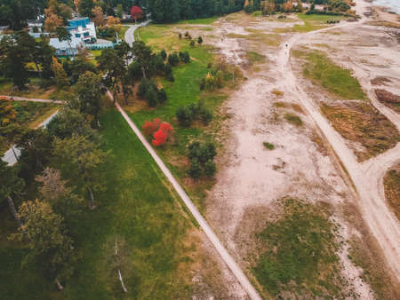 Aerialphoto suburbs of St. Petersburg. Country houses, forests, coastline of the Baltic sea